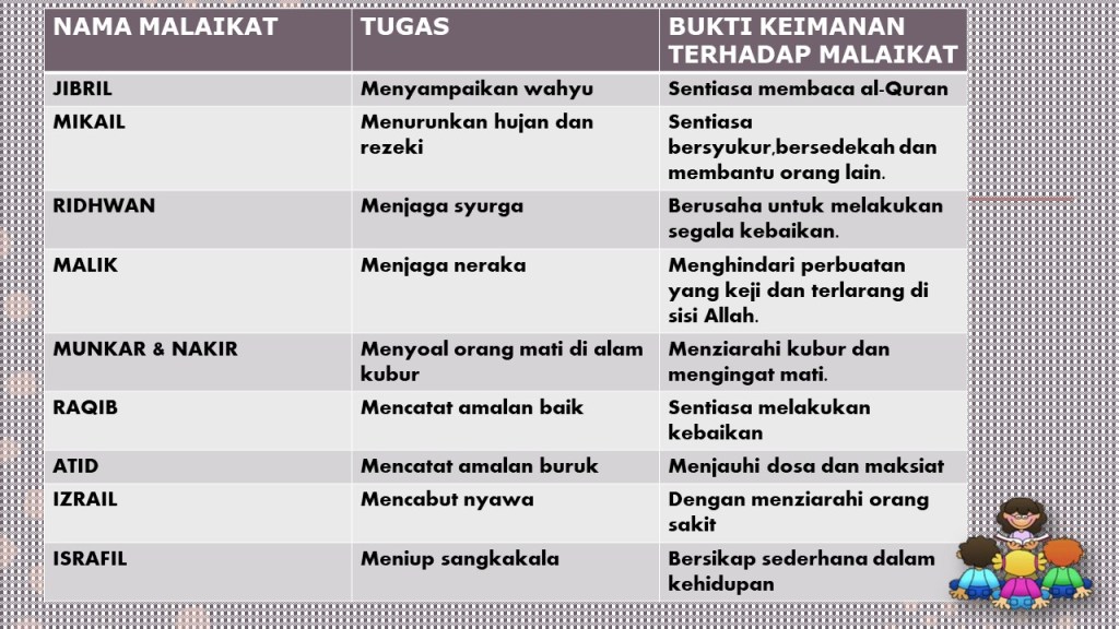NAMA-NAMA MALAIKAT SERTA TUGAS MEREKA DAN TINDAKAN YANG PERLU DILAKUKAN BAGI MEMBUKTIKAN KEIMANAN KITA TERHADAP MALAIKAT